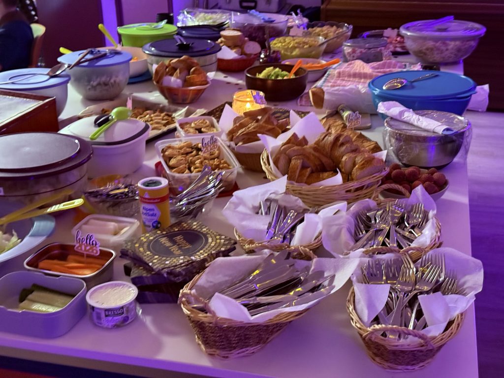 Am Silvesterabend waren alle eingeladen den Jahreswechsel vereint in Gottes Familie zu erleben. Ca.80Personen trafen sich dazu im Gemeinschaftshaus Unteraspach. Sie wurden in festlich geschmückten Räumen empfangen mit einem Ständerling bei Cocktails, die engagierte Jugendliche bereitgestellt hatten. Nach einer kurzen Begrüßung und einem Willkommenslied für klein und groß, waren alle eingeladen sich an einem überreichen Büffet zu bedienen und in fröhlicher Tischgemeinschaft die vielfältigen Gaben der Güte Gottes zu genießen. Frisch gesättigt und gestärkt war es Zeit das Jahr mit einem ausführlichen Jahresrückblick im Film und Bildern nochmal revue passieren zu lassen und mit vielen Liedern und Gebeten dem Herrn für all das Gute zu danken, was wir in diesem Jahr empfangen und erleben durften und auch alles ungewisse, neue und kommende in seine Hand zu legen. Unser junges lebensfrohes Musikteam hat alle wunderbar dahinein mitgerissen und ermutigt und David Bako ergänzte zwischendurch mit wertvollen Gedanken zur neuen Jahreslosung: Gott spricht: Siehe! ICH mache alles neu! Zum Abschluß durften jeder noch ein persönliches Jahreslos ziehen, mit einem Wort Gottes, das ihn durchs kommende Jahr begleiten kann. Beim anschließenden Nachtischbüffet, das kaum zu überbieten ging, konnte man sich weiter über die Worte austauschen und einfach weiter die Gemeinschaft im Segen Gottes feiern bis ins neue Jahr hinein. Einige waren dann aber doch schon reif fürs Bett, andere machten sich kurz vor Mitternacht nochmal auf den Weg zu einer schönen Aussichtsstelle. Ab 0.00Uhr gab es dort ein herzliches Umarmen und Segensgrüßen für alle…ja, alles in allem war es wie in einer riesengroßen Familie, ein wunderschöner, harmonischer, wertvoller Abend im Vaterhaus Gottes! Zurück im Gemeinschaftshaus wartete noch für jeden ein Gläschen Sekt und Knappereien, bei denen einige gerne in dieser Gemeinschaft noch länger verweilten. Aber in jedem Ende steckt auch ein neuer Anfang! So hat die junge Generation um 1 Uhr erst nochmal kräftig und fröhlich eingeladen zum Jesus-Rave! Jesus feiern und loben, für ihn singen und tanzen und sich an dem Leben freuen, das Er uns in seiner Gnade geschenkt hat! Auch das war ein wunderschönes und ansteckendes Vorbild und Ermutigung für alle Älteren und müde gewordenen…die dem Herrn vertrauen kriegen neue Kraft! Für einen neuen Tag und ein neues Jahr! Ich glaube in dieser Nacht ist jeder von dort irgendwann nicht nur müde, sondern auch sehr dankbar und beschenkt in sein Bett gefallen…früher oder später oder ganz früh…!