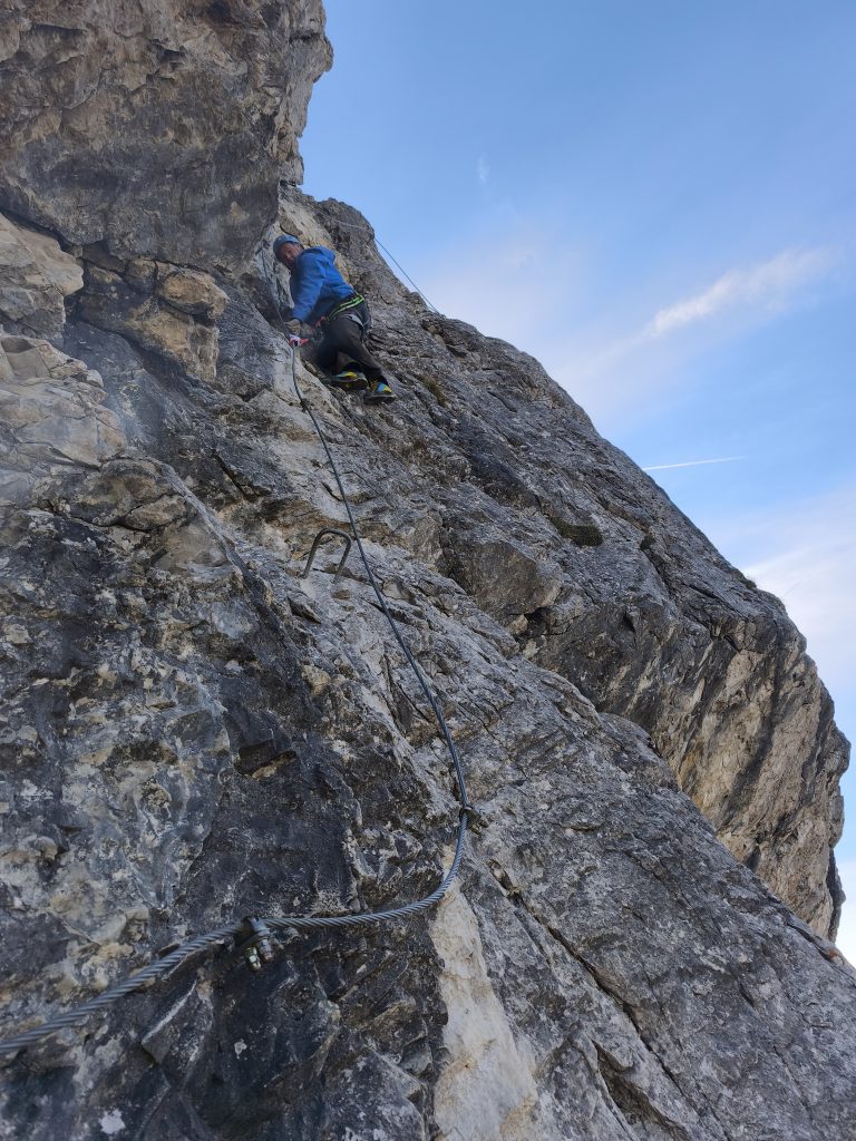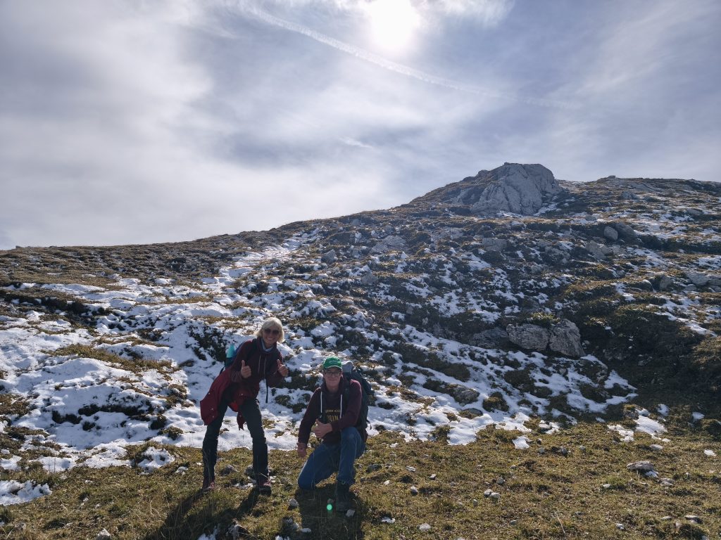 Am 2. Tag konnten einige bei Wind/Wolken erneut einen 2000er Gipfel erklimmen (die Rote Spitze), für die anderen gab es einen Übungsklettersteig oder einfach Verweilen an der Hütte. Anschließend ging es zum Abstieg an den Vilsalpsee. Nach und nach klarte es auf und wir konnten zum Abschluss noch ein wunderbares Berg-/Naturpanorama genießen und uns bei Kässpätzle und Kaiserschmarren am See stärken.